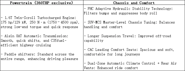 - نظام الترفيه والمعلومات C-CONNECT 3.0: يدعم التحديثات عبر الإنترنت، وخدمات CarLife/HiCar، بالإضافة إلى التحكم الصوتي